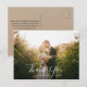 Classic wedding thank you post card template features a photo on the front, and a customizable message at the back. You can personalize it with the customize it button. Send out your wedding thank you message as newly weds to your friends and family using this beautifully, simple thank you wedding photo postcard with the words "thank you" written in a white handwriting script text overlay.