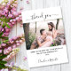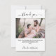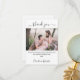 White background. Large hand lettered script with swashes and the text: Thank You. Personalise and add your photo, thank you note and names.