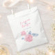 Wedding inked drawing roses flower art on a white background wedding favour bags. Rose ink drawing wedding set. Pretty pink and blue shades on a white background. Customise with your bride and groom's name and wedding date. Rose flowers art ink drawing wedding gift bags. Ideal for food favours or for wedding confetti. Great for wedding cake slices and for use at the wedding reception. Design and original inked art by Sarah Trett. www.sarahtrett.com for www.mylittleedenweddings.com