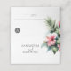 These wedding place cards with meal choice feature watercolor hibiscus flowers in shades of pink. Use the template fields to enter the bride and grooms names and meal choice initial: (v) vegan, (b) beef, (c) chicken and (gf) gluten free. Space is provided for guest's names and table number. The card opens to reveal a blue ornate pattern. To see more wedding place cards visit www.zazzle.com/dotellabelle