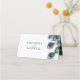 These wedding place cards with meal choice feature a watercolor peacock in shades of royal blue, green and purple. Use the template fields to enter the bride and grooms names and meal choice initial: (v) vegan, (b) beef, (c) chicken and (gf) gluten free. Space is provided for guest's names and table number. To see more wedding place cards visit www.zazzle.com/dotellabelle