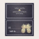 Wedding Place & Escort Cards / Seating Place / Table Number Card Templates - Elegant Faux Gold Foil Pineapple Couple on Navy Blue Floral Damask Linen Background.