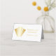 Wedding place setting card gold coloured art deco design. Customise this gold coloured wedding place setting card with your wedding details. Should you require any help with customising then contact us through the link on this page. Gold coloured art deco personalised wedding place setting card