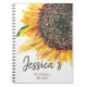 Custom wedding plans spiral notebook with yellow and brown watercolor sunflower on white. Personalised with the bride's name or any text you choose. Contact us for help with customisation or matching products.