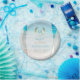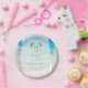 Party Plates | Modern Monogram Geometric Beach Wedding | A modern twist on the Beach Wedding - Unique Wedding designed for theBarefootBride™ by ©WhimsicalArtwork™ features an offset terrarium style geometric shape with varying transparencies in the facets to allow the Tropical Ocean Beach background to show through in a variety of shapes and intensities. A Playful approach of typography in the text - with Bride and Groom first name initials surrounded by a laurel wreath on top - in two colours (teal and gold) - followed by coordinating serif fonts in muted grey blue green (picked up from the ocean) teal (picked up from ocean waves in the background) and gold lettering. - if you need help please feel free to contact me.