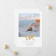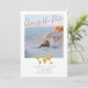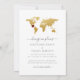 Photo change the date announcement card for a destination or travel theme wedding that's had to be rescheduled or postponed with minimal and modern typography, and a gold world map with editable heart location on the back. Click CUSTOMIZE FURTHER to move the heart or change fonts.