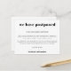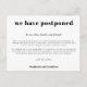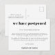 Wedding Postponement Simple Typographical White Announcement Postcard