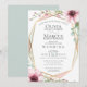 WEDDING INVITATION | Terrarium style frame with anemone flowers in pink and light sage green eucalyptus leaves surrounding the frame. A combination of script calligraphy combined with a minimalist, contemporary style text layout makes it a trending style wedding suite. Design created for TheBarefootBride™ by © WhimsicalArtwork™. This is part of a wedding stationery suite collection with matching wedding accessories also baby shower and other occasion stationery. Feel free to contact us if you need assistance.