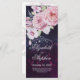 Wedding Program Rack Cards Templates - Elegant Watercolor Natural Boho Floral Feather and Handwritten Script on Purple Sparkle Bokeh Lights Background.