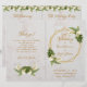 A very modern folded wedding program, combining multiple trends: geometric, marble, metallic (gold) and some special fonts.