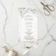 This wedding ceremony program card is the perfect way to keep your guests informed about your special day's schedule. The design features a whimsical and bohemian style, with a faux-gold framing, faint sage-green botanicals, and faux-gold blobs. The card is printed on high-quality card stock and can be easily included with your invitation or handed out to your guests as they arrive at your ceremony. The front of the card features a geometric faux-gold border and whimsical greenery, setting the tone for your special day, and includes a schedule of your wedding day events, allowing your guests to know what to expect. The back of the card includes a list of the members of your wedding party, such as the bridesmaids and best men. The back of the card is adorned with a beautiful faux-gold pattern, adding the perfect finishing touch to this one-of-a-kind design. Whether you're having a traditional or bohemian wedding, this ceremony program card will keep your guests informed and engaged throughout your special day.