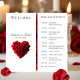 A detailed timeline ensures guests don't miss a moment, from the soulful ceremony to the lively dance floor. Make your wedding celebration unforgettable with these Wedding Event Timeline programs. Featuring a modern sleek design with Red Rose in the shape of a heart epitomising style and convenience. Make your Wedding memorable from start to finish. View our Collection for a Themed Wedding!