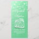 Wedding Program Rack Cards Templates - Elegant Lettering Script and Vintage Couple Mason Jars and String Lights on Green Gold Foil Texture Background.