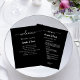 A classic wedding program and menu. A black background. White text. Personalise and add your name, date and both your program and the menu.