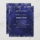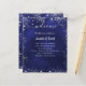 A classic wedding program and menu. A navy blue background. The blue colour is uneven. White text. Decorated with faux silver glitter, sparkles. Personalise and add your name, date and both your program and the menu.