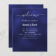 A classic wedding program and menu. A navy blue background. The blue colour is uneven. White text. Personalise and add your name, date and both your program and the menu.