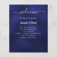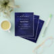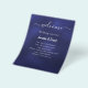 A classic wedding program and menu. A navy blue background. The blue colour is uneven. White text. Personalise and add your name, date and both your program and the menu.