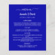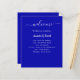 A classic wedding program and menu. A royal blue background. White text. Personalise and add your name, date and both your program and the menu.