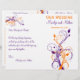 This purple, orange and white floral wedding program has customisable text for you to change to whatever you need it to say. It is a fold in half template that you change the information on. If you need assistance, email niteowlstudio@gmail.com.