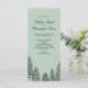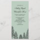 This rustic wedding program features pine trees on a green background. The design is a high quality image and prints beautifully. Customise your order of service online and see it before you purchase it. This wedding program was designed by Victoria at VG Invites.