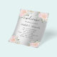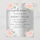 A welcome/program, timeline poster for a wedding. A stylish faux silver looking background decorated with blush pink and white flowers. Personalise and add your names and the details. Black letters.