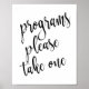 An elegant cutting edge wedding sign, features the text "programs please take one" in a extroverted script font, the brush texture adds a spontaneous and playful feeling. The background colour can personalised according to your needs and preferences, please contact me if you have any special request.