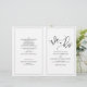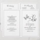 Modern Wedding Programs - Bounce Calligraphy (Black): These modern wedding programs feature a fun bouncy calligraphy script in black. We've set these up for you so they're super easy to edit. Simply type in your text, and they should be all set up for you. If you need to make more changes, simply click on "customise more" to move around your headings and adjust.