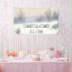 Wedding Reception Banner Winter Blue and White created with a Winter Wonderland theme of snow falling in a forest, with text: CONGRATULATIONS! and the Bride & Groom's Names. To personalise, simply insert your text into our easy template, replacing the sample.