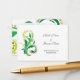 Wedding reception detail cards, bride groom's name, address, time. Green and yellow swirl floral design. Sending with invitations.