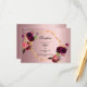 An elegant wedding reception details card. A faux gold geometric shaped frame with bohemian, boho style watercolored roses in burgundy and pink. Dusty rose faux metallic looking background. Templates for your wedding reception details, black text.