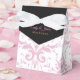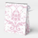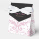 Shown here is the tent style favour box. This box coordinates with the temple wedding invitation and reception invitation. Has the Pink Coronation pattern on all sides of this favour box. Personalised names of the newlyweds across the top flap over Black. To personalise the names, click the "unfolded" button after clicking customise button. Customise this item to your desires.