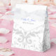 Shown here is the tent style favour box. This box coordinates with the temple wedding invitation and reception invitation. Has the Silver Coronation pattern on all sides of this favour box. Personalised names of the newlyweds across the top flap. To personalise the names, click the "unfolded" button after clicking customise button. Customise this item to your desires.