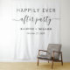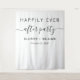 Simple black and white wedding reception or party photo booth backdrop tapestry with "Happily Ever After Party" in a mix of simple typography and a trendy script with swashes, your first names and the date.