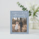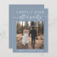 Budget-friendly dusty blue elopement or private wedding announcement and reception or celebration party invitation. The front features "Happily Ever After Party" in modern white typography and a stylish white script with swashes, your photo, names and wedding date. On the reverse side, personalise your wedding announcement and reception invitation, easily create a QR code linked to your wedding website for guests to scan to see your wedding photos, all the details and to RSVP online, and add your names in a signature-like script.