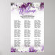 This Wedding Reception Seating Chart features a lovely White and Purple Floral design that will help your wedding reception guests find their tables and also match your chosen wedding colors. The Chart measures 20X30 inches (50.8x76.2cm) and can be effortlessly mounted on a board or wall. The guests' names have been organized alphabetically for each table, ensuring a smooth seating arrangement. If you require a different size, feel free to explore other options that maintain a similar proportion.