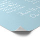 A wedding reception seating chart is an elegant way to direct your guests to their tables instead of using place cards. You can also keep your seating chart as a momento of your wedding and the people who celebrated with you. This wedding seating chart features a subtle white line art flower on a blue background. It is designed to fit in a standard frame and comes in the following sizes: 11x14, 15x19 and 23x29. You can supply your own frame, or order your wedding seating chart with a frame included. We also offer a square version of this wedding seating assignment chart.