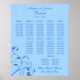 A wedding reception seating chart is an elegant way to direct your guests to their tables instead of using place cards. You can also keep your seating chart as a momento of your wedding and the people who celebrated with you. This wedding seating chart features blue swirls and curls on a light blue background. It is designed to fit in a standard frame and comes in the following sizes: 11x14, 15x19 and 23x29. You can supply your own frame, or order your wedding seating chart with a frame included. We also offer a square version of this wedding seating assignment chart.
