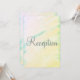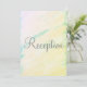 Pretty wedding reception cards with a splash of soft pink, green, yellow, blue tropical watercolor wash with black and grey text. Personalise Back of Reception cards with your Wedding details (type in place of my sample text). Insert the married couples last name monogrammed initial (or delete text field to leave blank). Shown on elegant Linen Paper with High Definition. A filter was used for the background. Original Artwork Design by TamiraZDesigns.