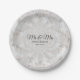 Wedding reception silver grey white gold cocktail paper plates. Elegant simple printed design. Text can be personalised. Image copyright Marg Seregelyi Photography.