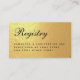 A black and gold wedding enclosure card: just black text on faux gold foil background. The title Registry is written in an elegant calligraphic script.