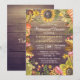 Wedding Rehearsal Dinner Invitation Card Templates - Elegant Autumn Maple Leaves, Pumpkins and Sunflowers Watercolor Flowers on Rustic Wood Background.
