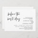 Modern Black Script themed, wedding rehearsal dinner invitation card (before the best day). It is perfect for your wedding rehearsal party celebration. Add your details in matching font / lettering.