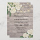 Wedding Rehearsal Dinner Invitation Card Templates - Elegant White lovely Watercolor Hydrangea Flowers and String Lights on Rustic Wood Background.
