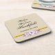 A beautiful set of coasters that recalls your wedding. Personalise it with your names and your wedding date. A small floral design embraces a narrow gold, beveled band near the bottom. The text is easily changed by using the template. However, if other changes are desired (different type fonts, colour, size, placement) select "personalise" then select "Edit using Design Tool."