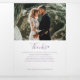 A six-page modern script text with little hearts wedding renewal program in muted purple and white. Edit this wedding program with your own wedding renewal names, dates, introduction, ceremony wording, wedding party attendants, photo of your first elopement or restricted wedding, and yours thanks. Original design by www.mylittleedenweddings.com