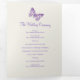 A six-page wedding renewal ceremony program. Edit this wedding program with your own wedding renewal names, dates, introduction, ceremony wording, wedding party attendants, photo of your first elopement or restricted wedding, and yours thanks. Other matching purple and cream butterflies and other colour wedding products options are available. Original butterfly inked art and design by Sarah Trett for www.mylittleedenweddings.com on Zazzle.