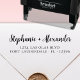Elegant Modern Bold Hand Lettered Brush Script Wedding Invitation Return Address Self Inking Stamp. These couple address stamps featuring your name in a pretty cursive handwritten style font typography and return address info easy to personalise them. Save time and add style to your wedding Save the dates Bridal Shower, RSVP, Baby Shower, Birthday Party, House Warming, Graduation Announcements Christmas Card and return address label stamp for Invitation. They even make great Christmas gifts for family members and friends, wedding gift or cute housewarming gifts for a new couple!