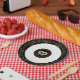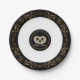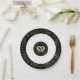 These richly designed paper plates are great for serving up some fun (and easy clean up too) for your next wedding event or anniversary party. Preformatted text [which you can change] has room for your two names. Shown here is a White inner rim and a double wedding ring print in the centre over chic Black background. Double Gold coloured border frills on the Black outer border and on the inner area round the wedding rings print. Personalise!