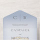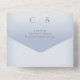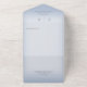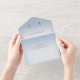 AVAILABLE WITH OR WITHOUT A QR CODE TO SCAN. This simple yet elegant design has a modern look, with two interlocked gold wedding rings on a soft white blur overlay on a soft dusty blue background. Personalised All-In-One invitations are a unique combination of both a beautifully printed custom invitation with an easy to tear off perforated RSVP postcard. And they are so easy to use! You simply fold, then seal the back flap with the three included clear stickers, and mail. And when your guests receive your custom invite, they just tear the perforated RSVP Card off and drop it back in the mail to you!