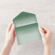 AVAILABLE WITH OR WITHOUT A QR CODE TO SCAN. This simple yet elegant design has a modern look, with two interlocked gold wedding rings on a soft white blur overlay on a soft emerald green background. Personalised All-In-One invitations are a unique combination of both a beautifully printed custom invitation with an easy to tear off perforated RSVP postcard. And they are so easy to use! You simply fold, then seal the back flap with the three included clear stickers, and mail. And when your guests receive your custom invite, they just tear the perforated RSVP Card off and drop it back in the mail to you!